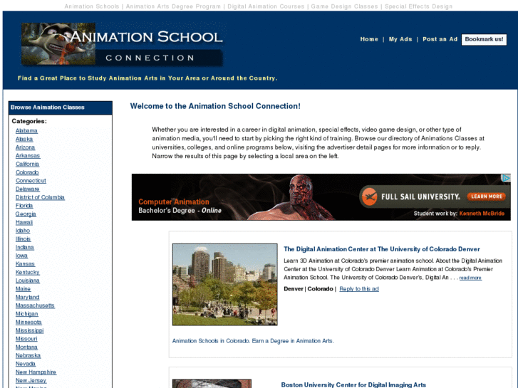 ANIMATION-SCHOOLS-CONNECTION.INFO Web Site Preview