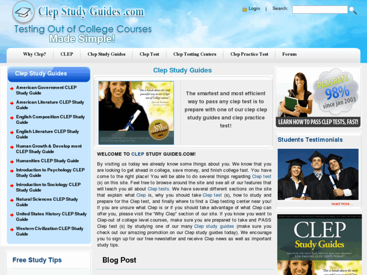 CLEPSTUDYGUIDES.COM Web Site Preview